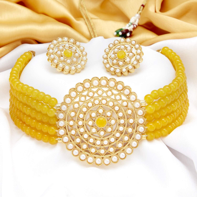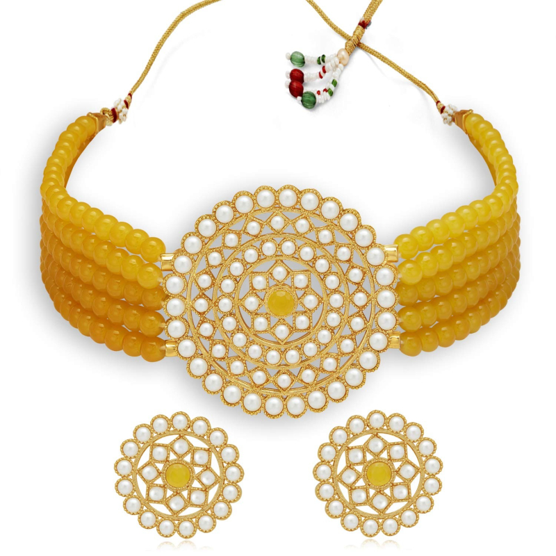 Adorable Gold Plated Pearl Choker Necklace Set for Women