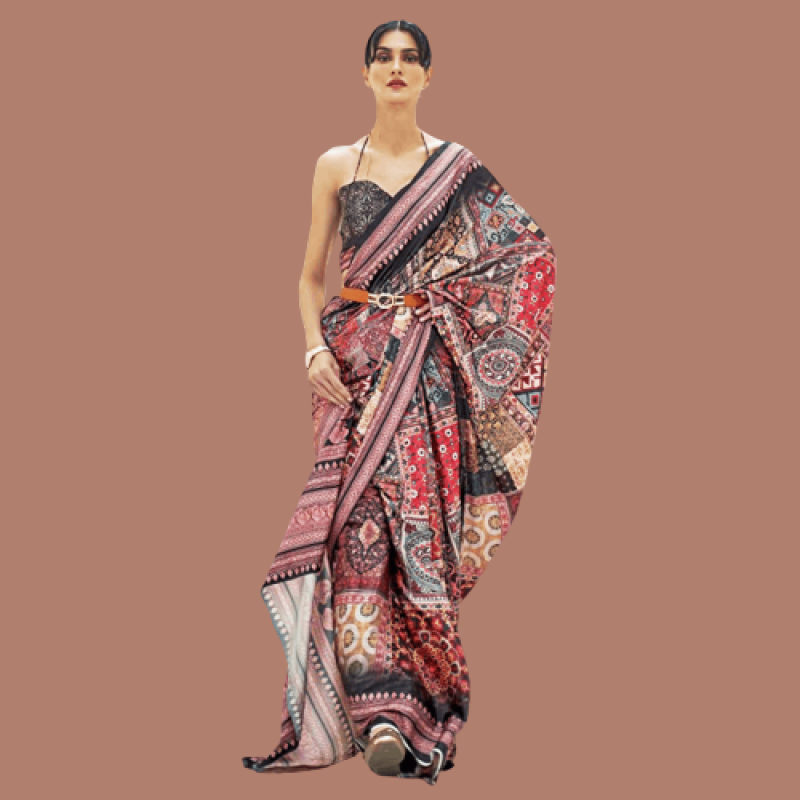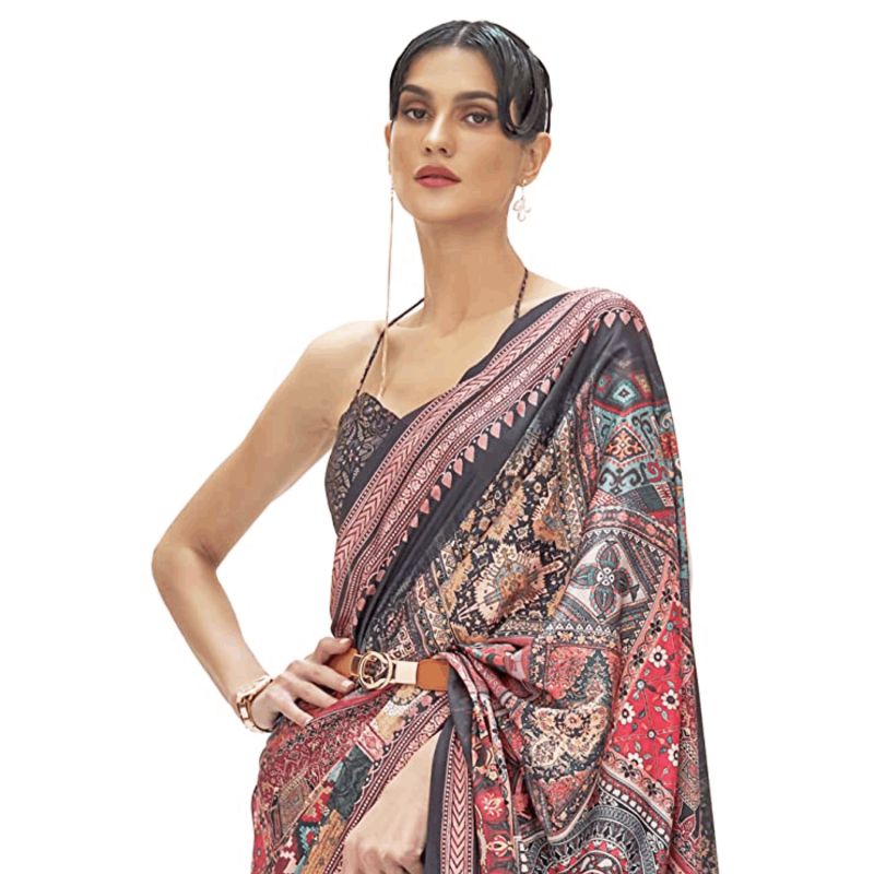 • Color :- Multicolored Saree || Black Unstitched Blouse