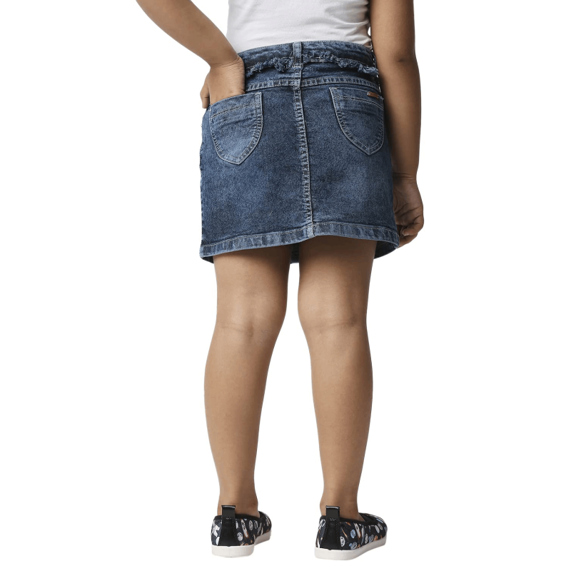 Girls Blue Solid Straight Mini Denim Skirt