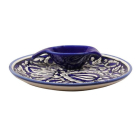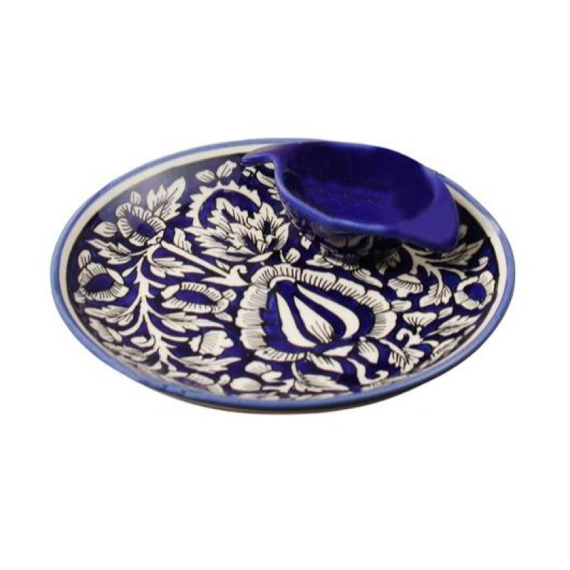 • The platter is set in a deep blue color, with wonderful abstract designs in white.