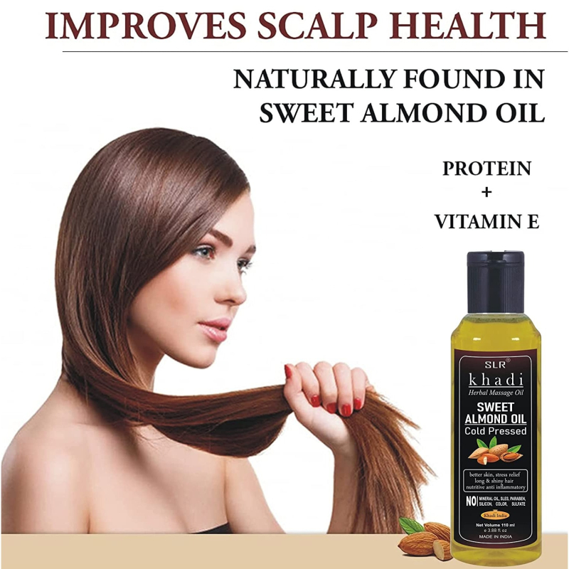 • SLR Khadi Sweet almond oil is ideal for massage on baby skin. It is mild in nature and hypoallergic. It easily absorbs in the skin and moisturizes it.
