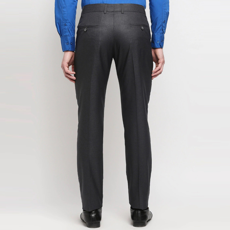 • Black solid mid-rise formal trousers, has a button closure, zip fly, and 5 pockets