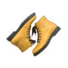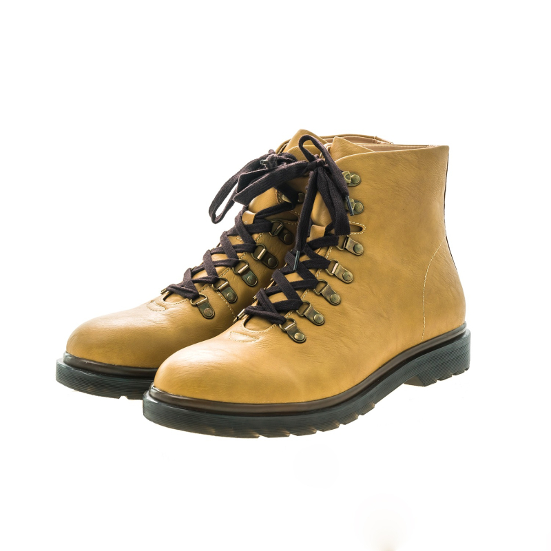 • A pair of Brown heeled boots has regular ankle and lace-ups
