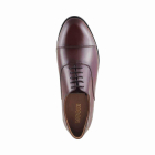 • A pair of tan brown round-toe formal oxfords, has central lace-ups