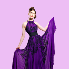 Purple solid maxi dress, has a V-neck, concealed zip closure, an attached lining, and flared hem