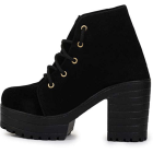 Women Side Lace Black Suede Boots