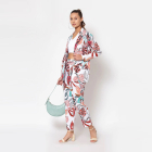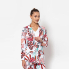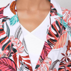 White floral printed single breasted blazer, has a notched lapel collar, short sleeves