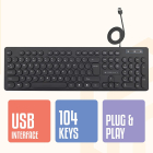 • Standard keyboard layout with 104 Keys and UV-coated keycaps (full size).